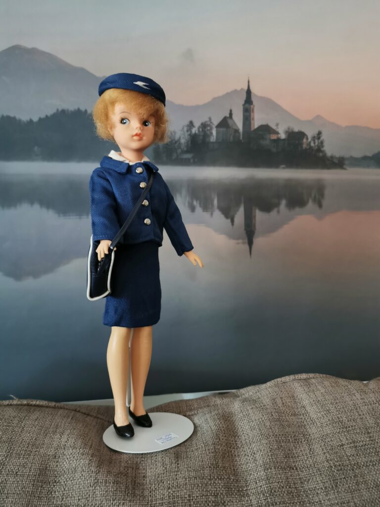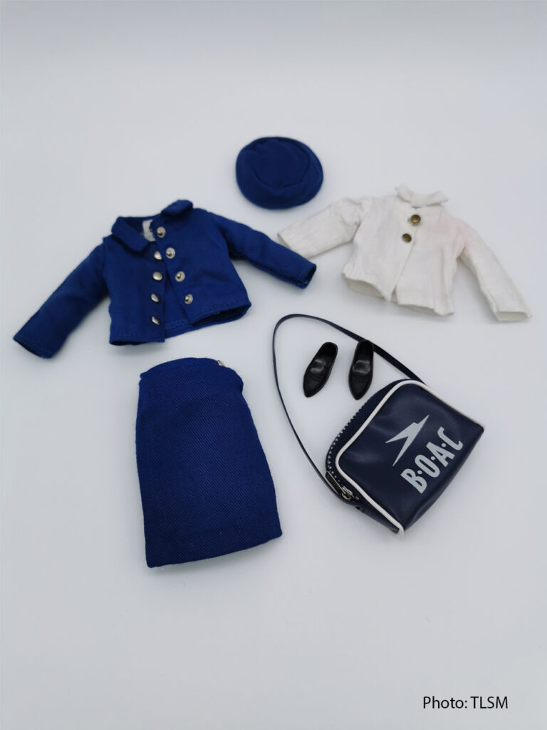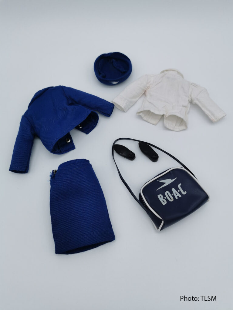 His BOAC uniform design consisted of a navy suit worn with a white blouse and gloves. The gloves was left out in Sindy’s uniform though.