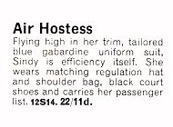 1966 Outfits: Air Hostess 12S14.