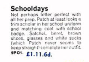 Below you can see the parts of the Schooldays outfit that TLSM has. Misses the shoes, the ink bottle, the red book, the pen, the pencil, the ruler and the glasses .