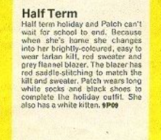 Below you can see the parts of the Half Term outfit that TLSM has. Misses the red sweater, the tartan kilt, the long white socks and the white kitten. Do you own anything of what’s missing and want to donate, sell or share photos of it, please get in touch!
