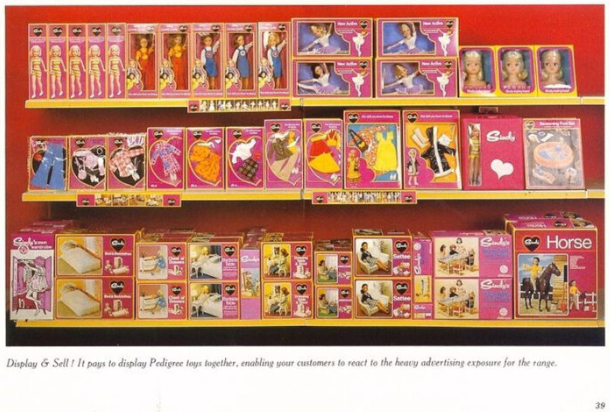 The photos belove are from the 1975 Sindy catalogue, but shows how the shops could present the Sindy items and as you can see the items are from 1974. Look at the Active Sindys on the top shelf!