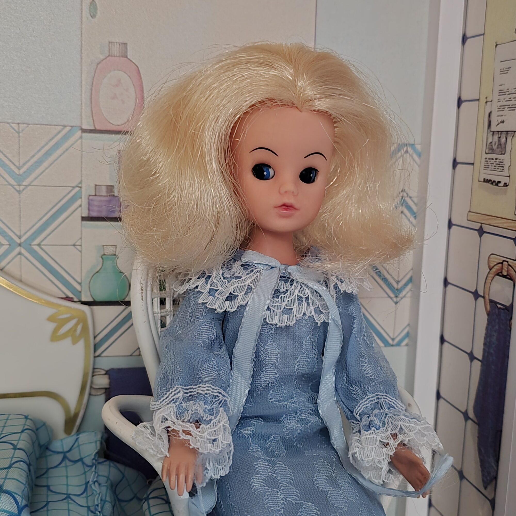 I find the lovely picture of the Sweet Dreams Sindy, in the catalogue, a bit misleading since they used a normal Sindy head to show this doll “awake”.
