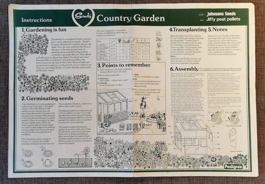 1981 Scensetters: Country Garden Yet another item new for 1981. Collage made of pictures from the 1981 Sindy Brochure. The instructions that followed in the box.