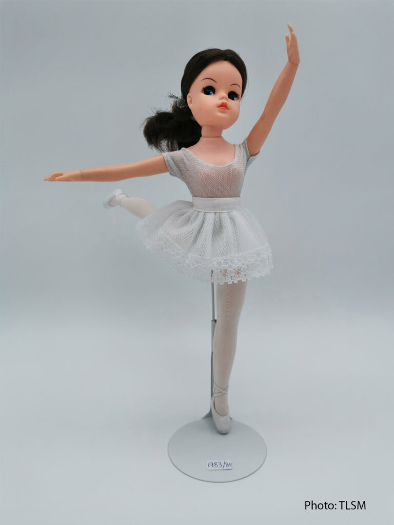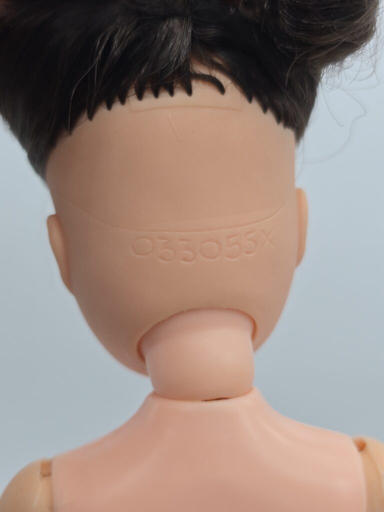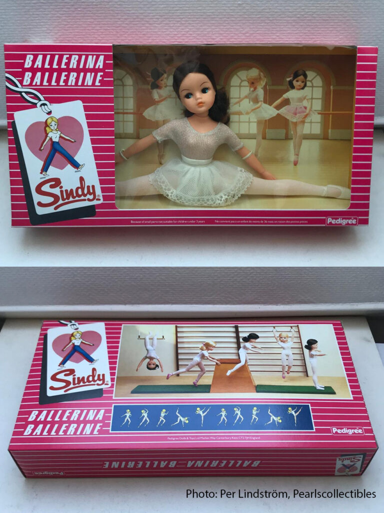 New for this year is that she’s named Ballerina, in the Pedigree catalogue and not Active, like all the earlier years! Sindy has soft head with “Sindy” on a raised plate (sometimes hidden in the hairline) on the back of her head and the numbers “033055X” above her neck.