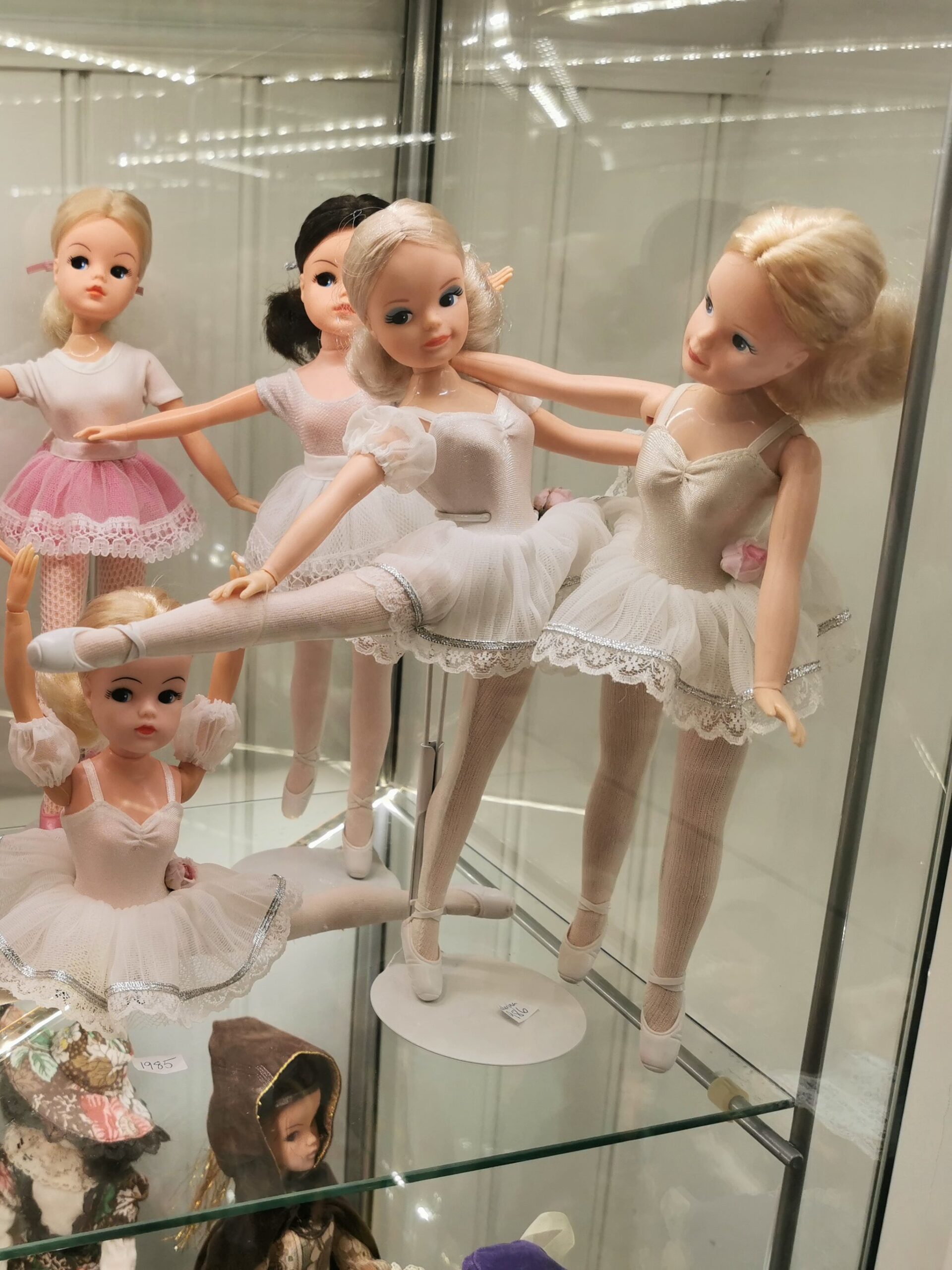 TLSM has the first issue of Ballerina Sindy, one still in the box, two (one ash blonde and one blond) dancing in their tutus with the other ballerinas and one practicing in the display cabinet with her dancing friends.