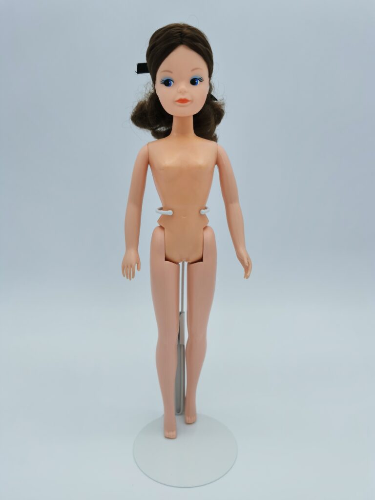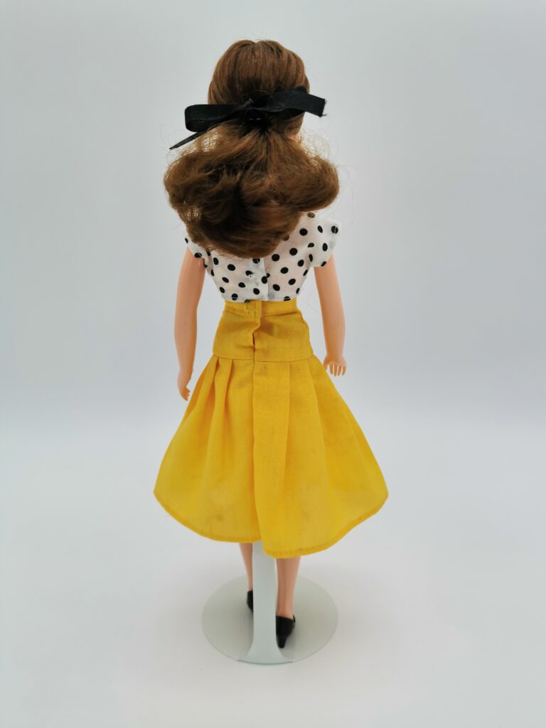 The brunette Sindy doll is here at The Little Sindy Museum. She was purchased as an ‘used’ Miss Sindy doll. TLSM is not 100% certain the head or body haven’t been switched but, as far as we can tell, it should be the correct doll on the photos below.