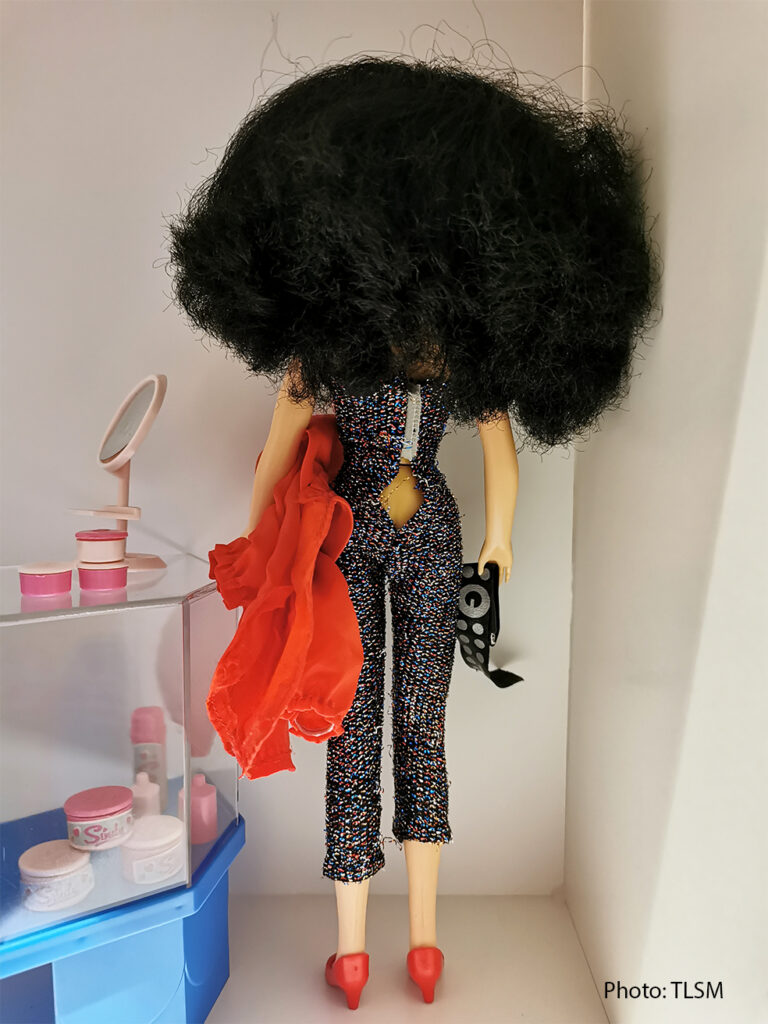 This Sindy doll is here at The Little Sindy Museum. She was purchased as an ‘used’ Sindy Disco Magic doll. TLSM is not 100% certain the head or body haven’t been switched but, as far as we can tell, it should be the correct doll on the photos below.