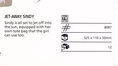 Hasbro Sindy 1990: Jet Away Sindy, 8087.