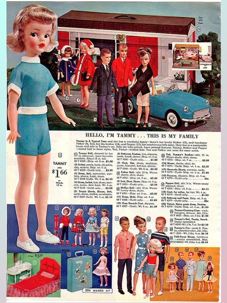 Jerry continues: “Tammy was effectively USA forerunner of Sindy adopting USP “The doll you love to dress”. When Sindy was launched here (UK, comment by TLSM) in 1963, Ideal and Lines Bros (Sindy’s owner) worked closely together in those days and reached agreement that Pedigree could exclusively use “The doll you love to dress” in all Sindy markets and that became Sindy USP for many years to follow. Though Sindy continued to prosper, Tammy was withdrawn from the US market in 1966.”