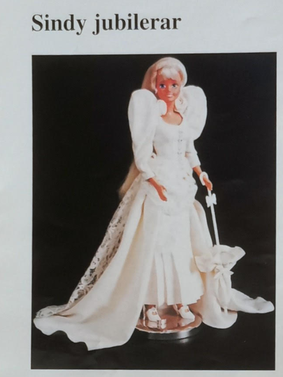 “Givetvis mottogs dessa förslag inte med någon större entusiasm av Hasbros huvudkontor i London. Vi var i kontakt med dem för att berätta om utställningen och de ville veta exakt vad vi skulle göra. När de fick kännedom att Super Sindy skulle rädda Action Man, slåss mot Alien och dessutom en vampyr från Transsylvanien vart det blank nej att få använda Sindys logotyp vid utställningen. Men stödet vi fick från de olika leksaksbutikerna som Stor & Liten, Nallens Leksaker, Barnens Hus samt Leksaksbranschens Per Sparre, redaktör på tidningen Leksaksrevy var omfattande. I januarinumret av Leksaksrevy fanns en artikel om Sindys jubileumsutställning. På grund av tidspress hann vi inte bygga scenerna med Alien, Action Man och de andra, trots att en färdig modell av Alien hade tagits fram. Men Nosferatu Sindy, designad av Anna-Lena från Barbieringen, fanns på plats.