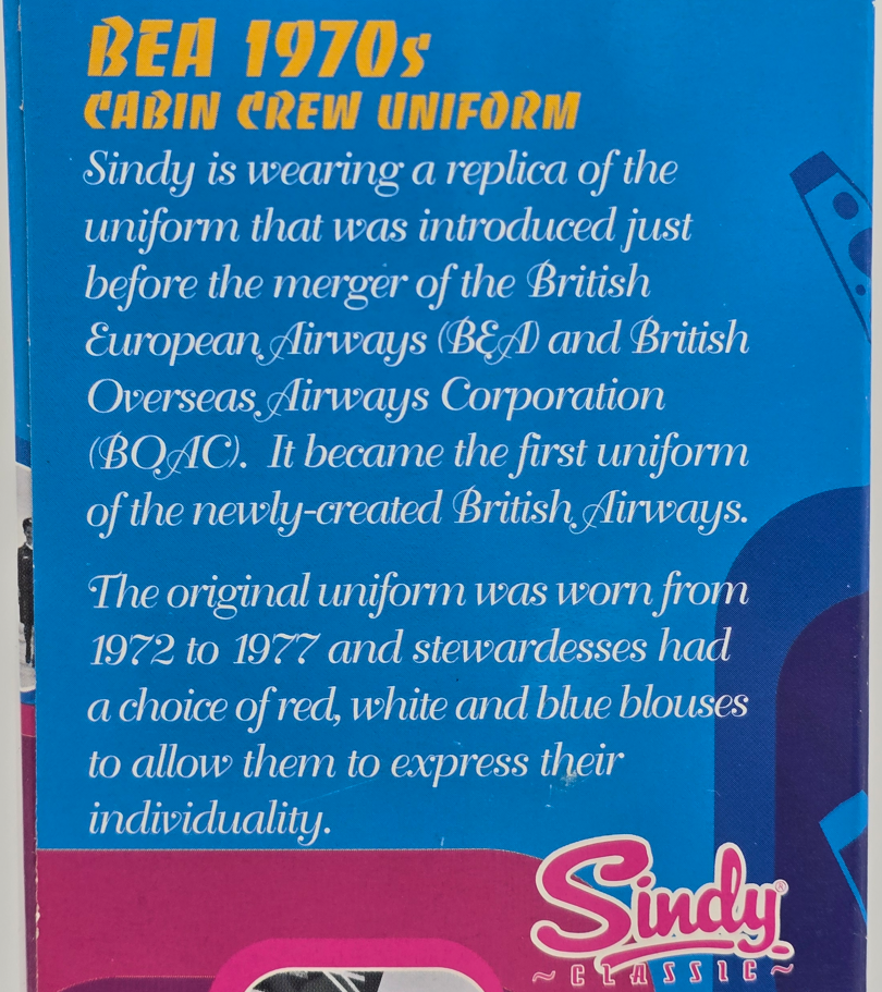 Sindy Cabin Crew Dolls: British Airways – 1970s BEA Uniform.
