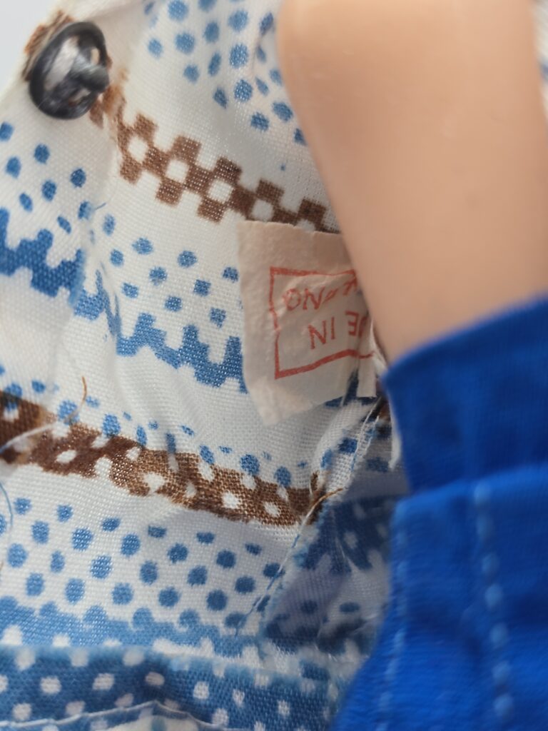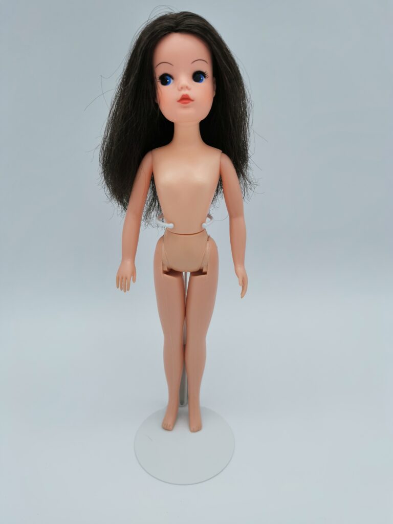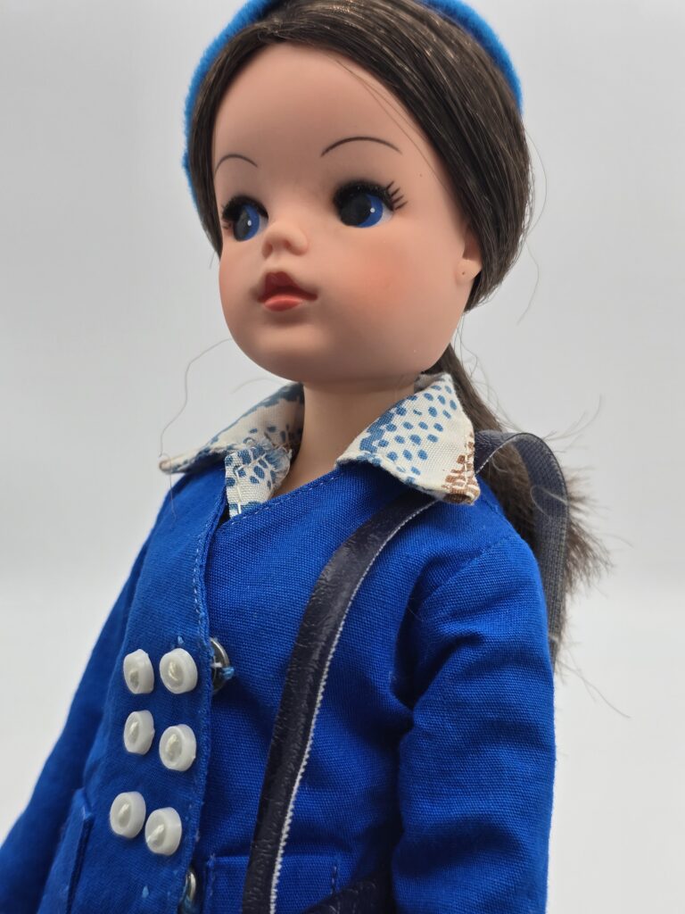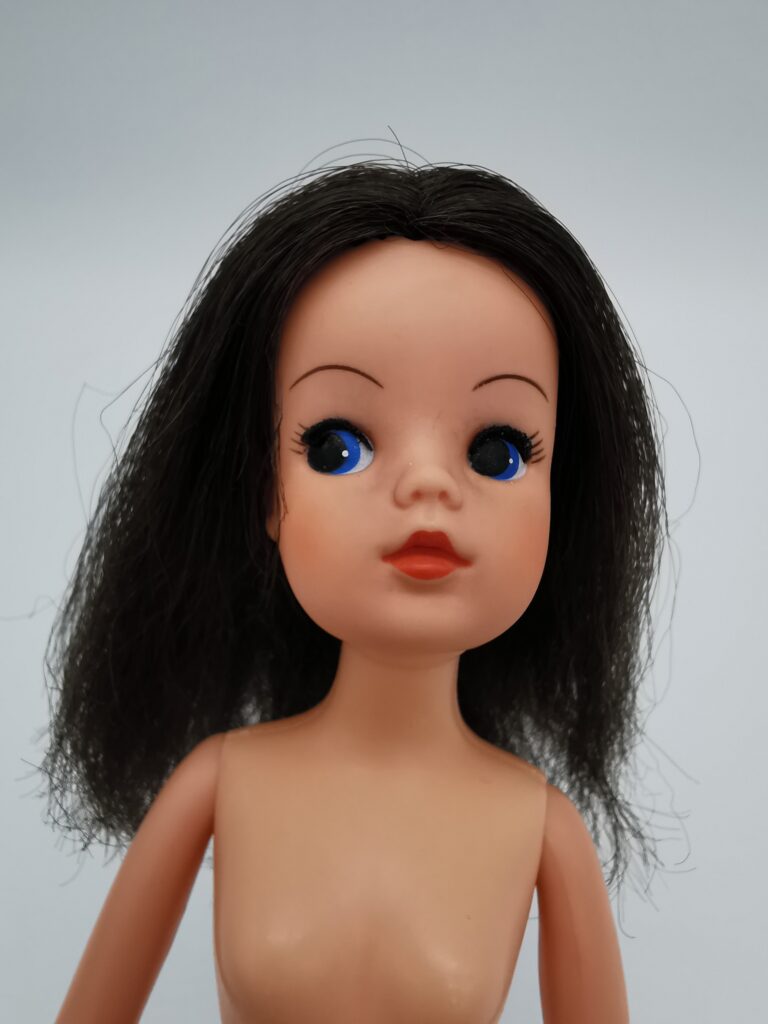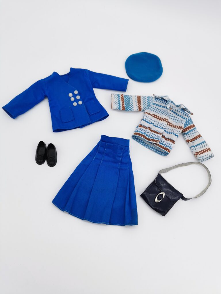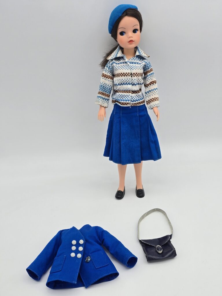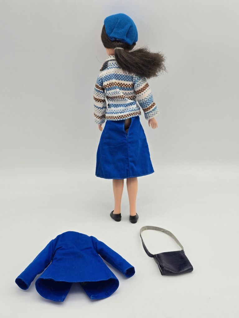 Below you can see TLSM’s played with doll bought as a KLM Sindy doll. But since there’s no photos to be found, of an original Sindy still in it’s box, there’s no way be sure this is the correct Sindy doll! TLSM’s outfit misses the scarf and the shoes is probably not the correct ones!