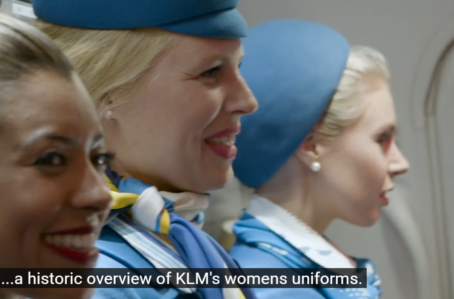 Below are some print screen shots of a YouTube video showing the original uniform that the KLM Cabin Crew Sindy and Fleur doll’s had replicas of. You’ll find the original video further down. Make sure to watch that one too!