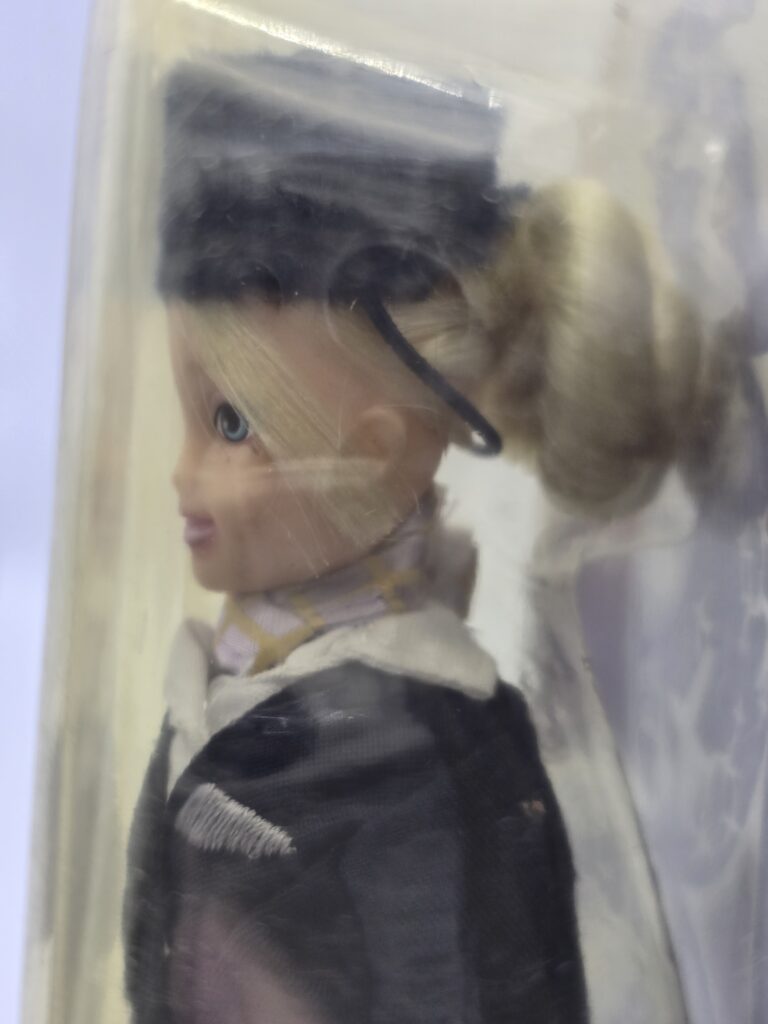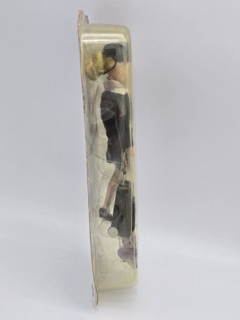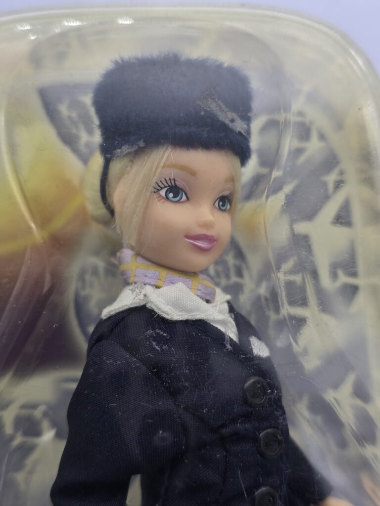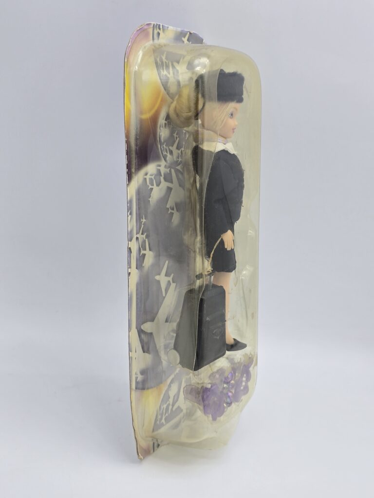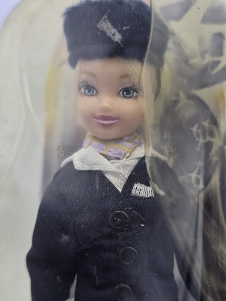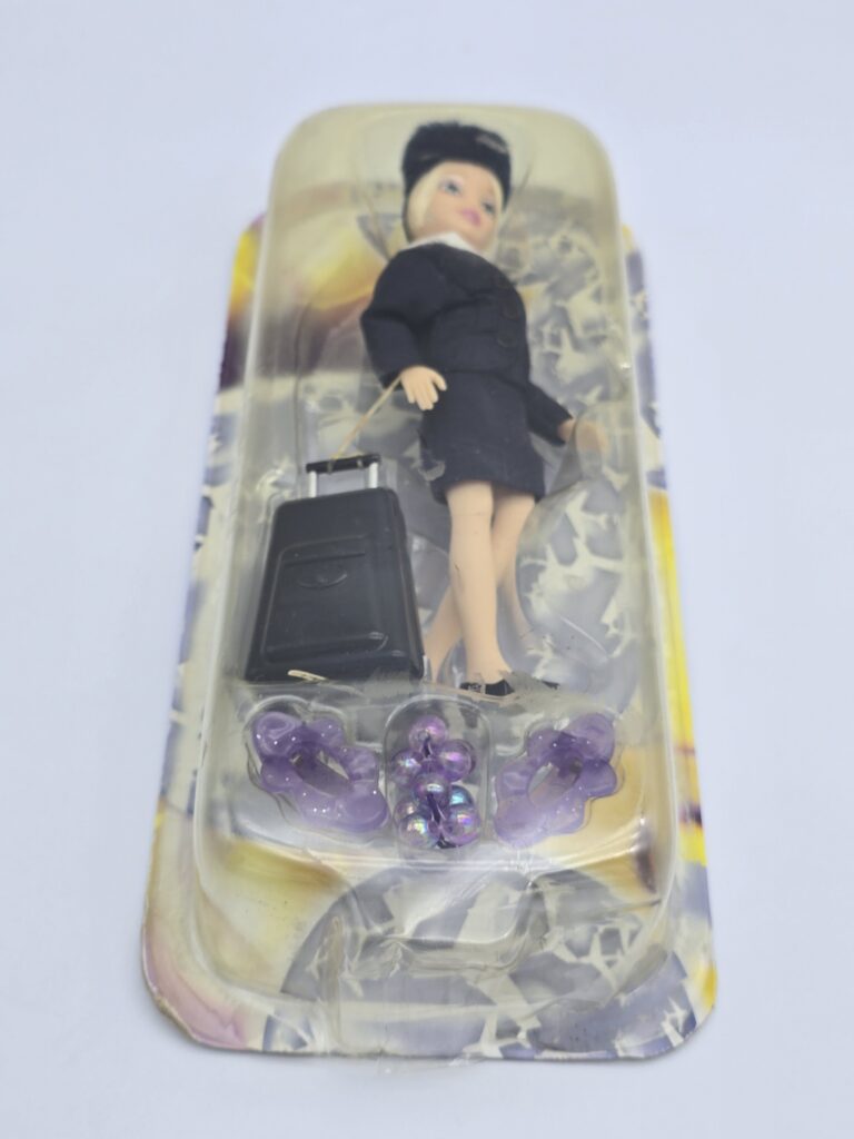 TLSM has been able to buy a boxed Monarch Cabin Crew Sindy, who’s the tiny New Moon 6.5″ doll. As far as TLSM can tell, she was produced around 2008. Monarch Airlines collaborated with Pedigree Dolls and Toys to create this cabin crew-themed Sindy doll as a promotional item, reflecting the airline’s branding and uniform styles.