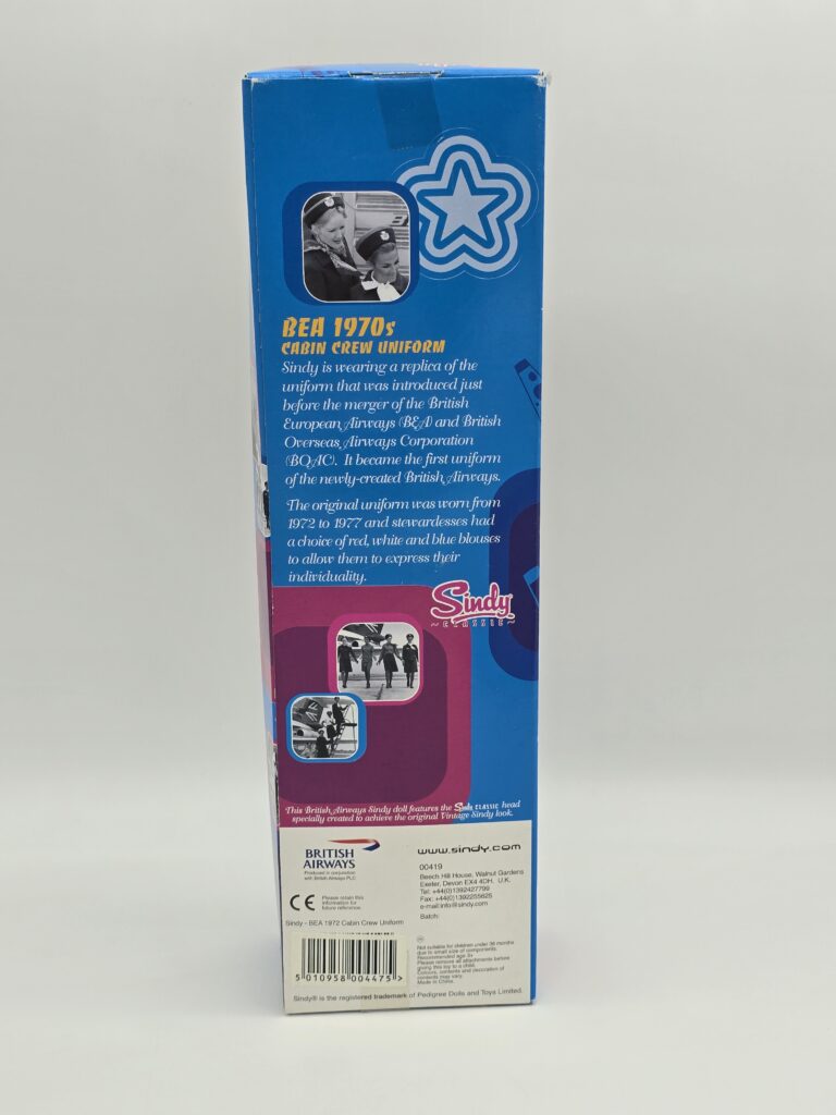 As far as TLSM knows, there’s been some different Sindy Cabin Crew Dolls made during the years under license by Pedigree Dolls & Toys, with various airline and uniform variations. These includes Martinair, (KLM), Air 2000, Virgin Atlantic, Excel Airways, My Travel, British Airways and Monarch Airlines.
