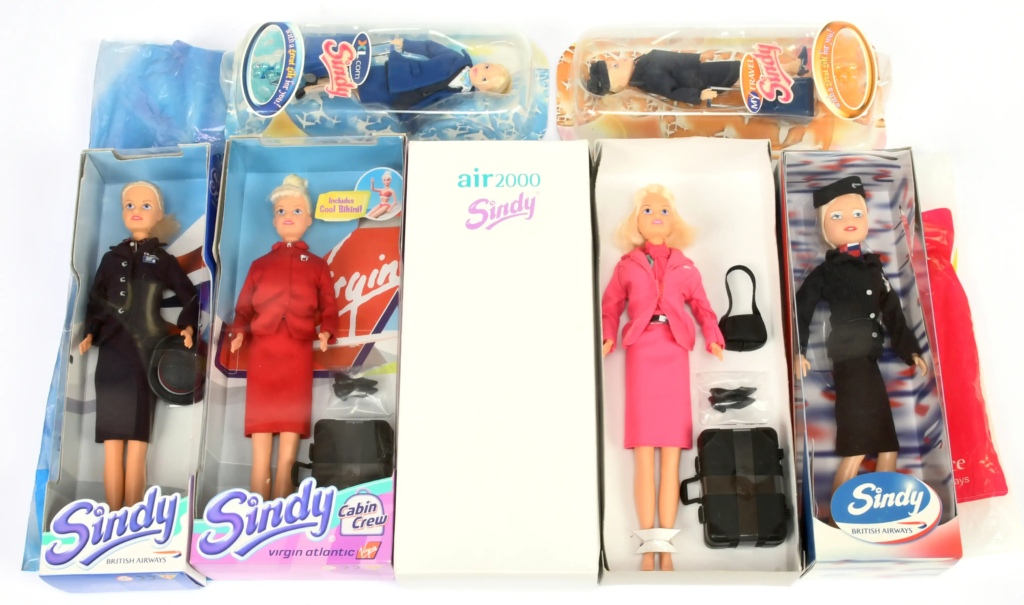 - Martinair Sindy: Produced under license by Otto Simon in the Netherlands, these dolls had several variations between the 1970s and 1980s, wearing different versions of the Martinair uniform.