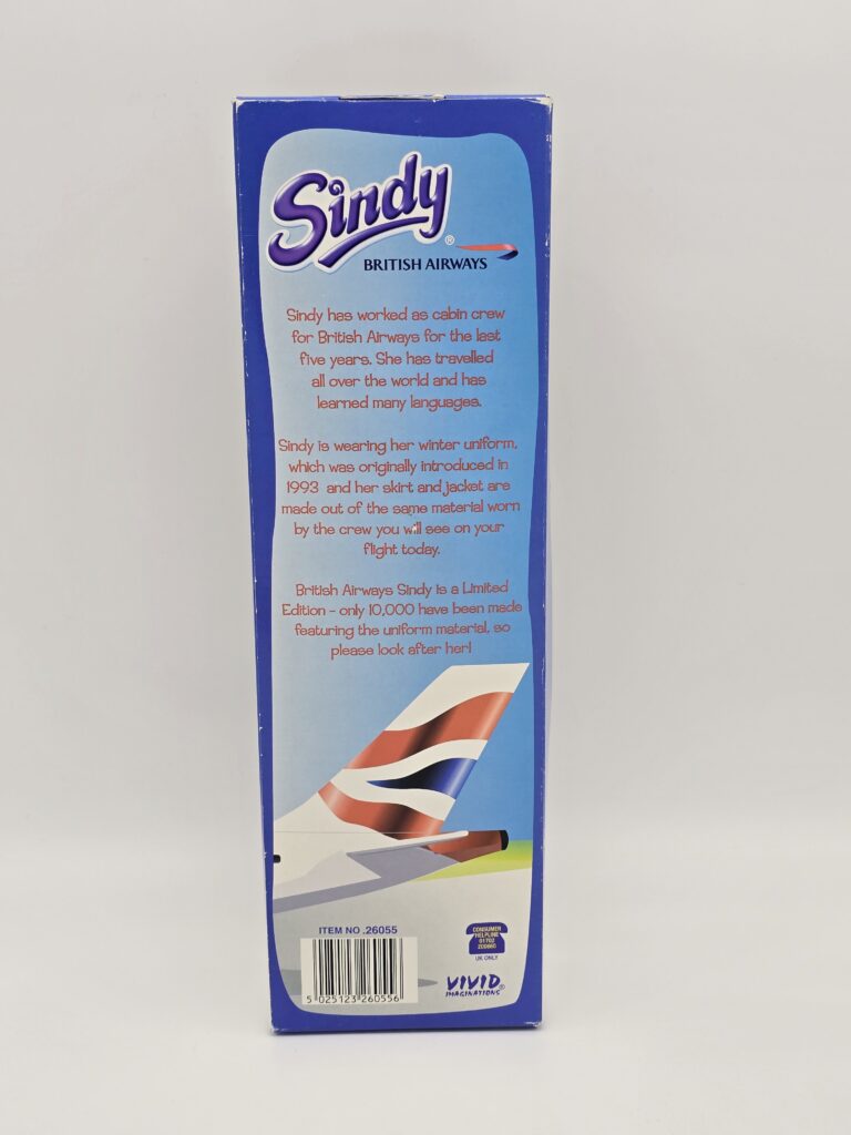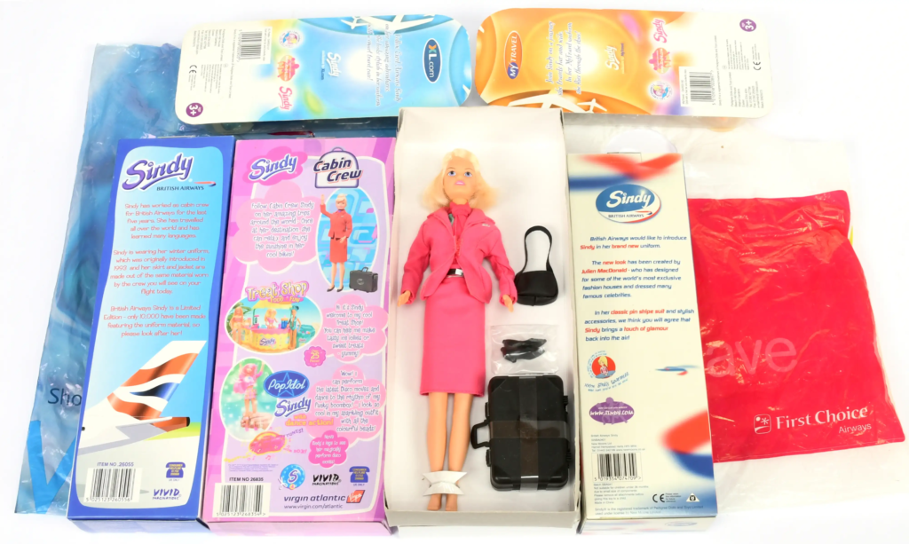 - British Airways: In 2003/2004 Vivid Imaginations released a Sindy wearing the British Airways cabin crew uniform (with the boater-style hat) designed by Paul Costelloe.