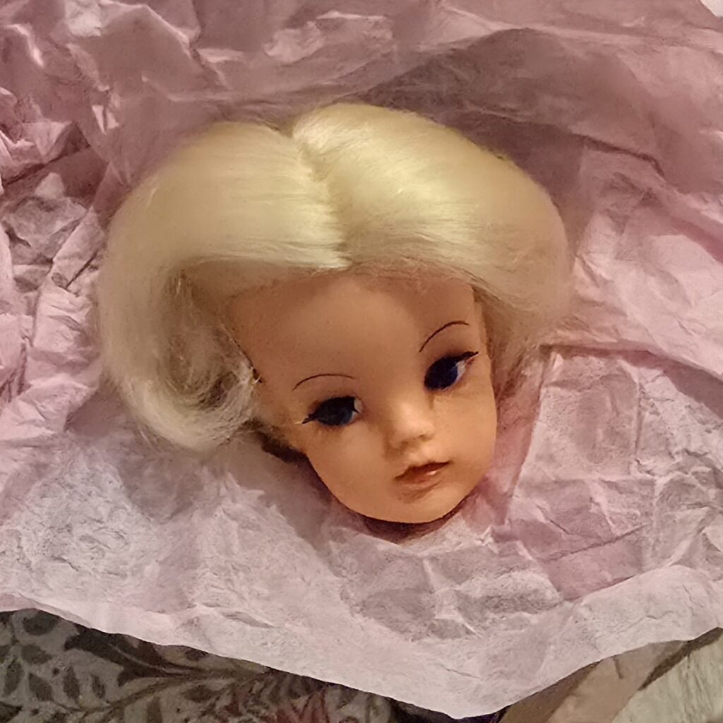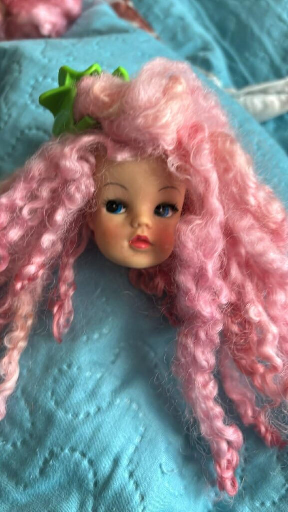 Lucy also helped me with this blond Lovely Lively head. Her eye lashes were gone but and her hair very sad looking.