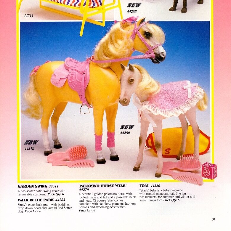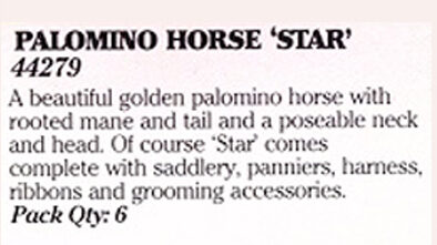 Sindy’s riding outfits & horses: 1986 Palomino Horse Star, 44279.
