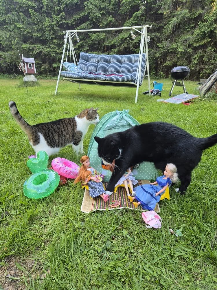 Some local cats came for a look at what was happening. Cats were good and nice kitties, so they did not harm girls.