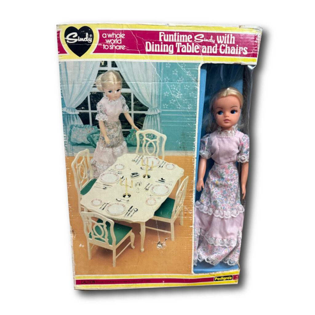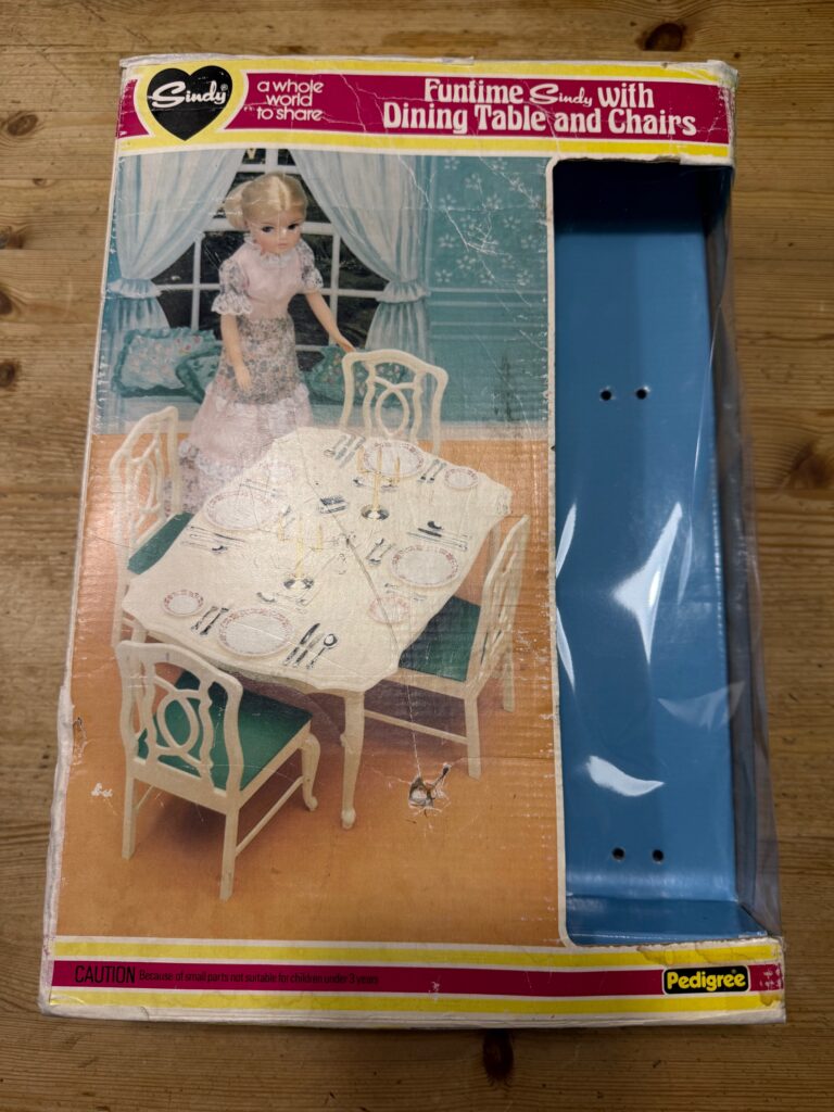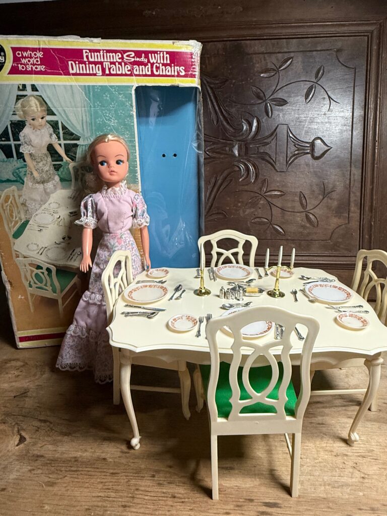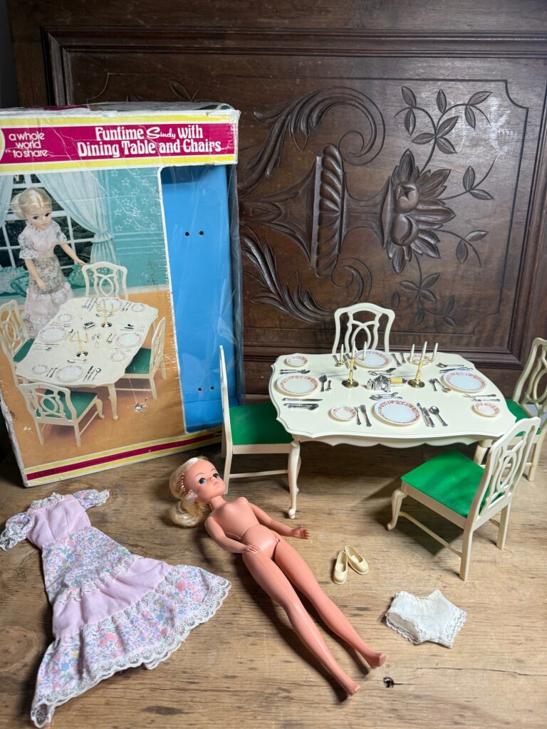 Joanne Burrows contacted TLSM and wrote: “This was an unusual Sindy dining table AND doll combo I found.”